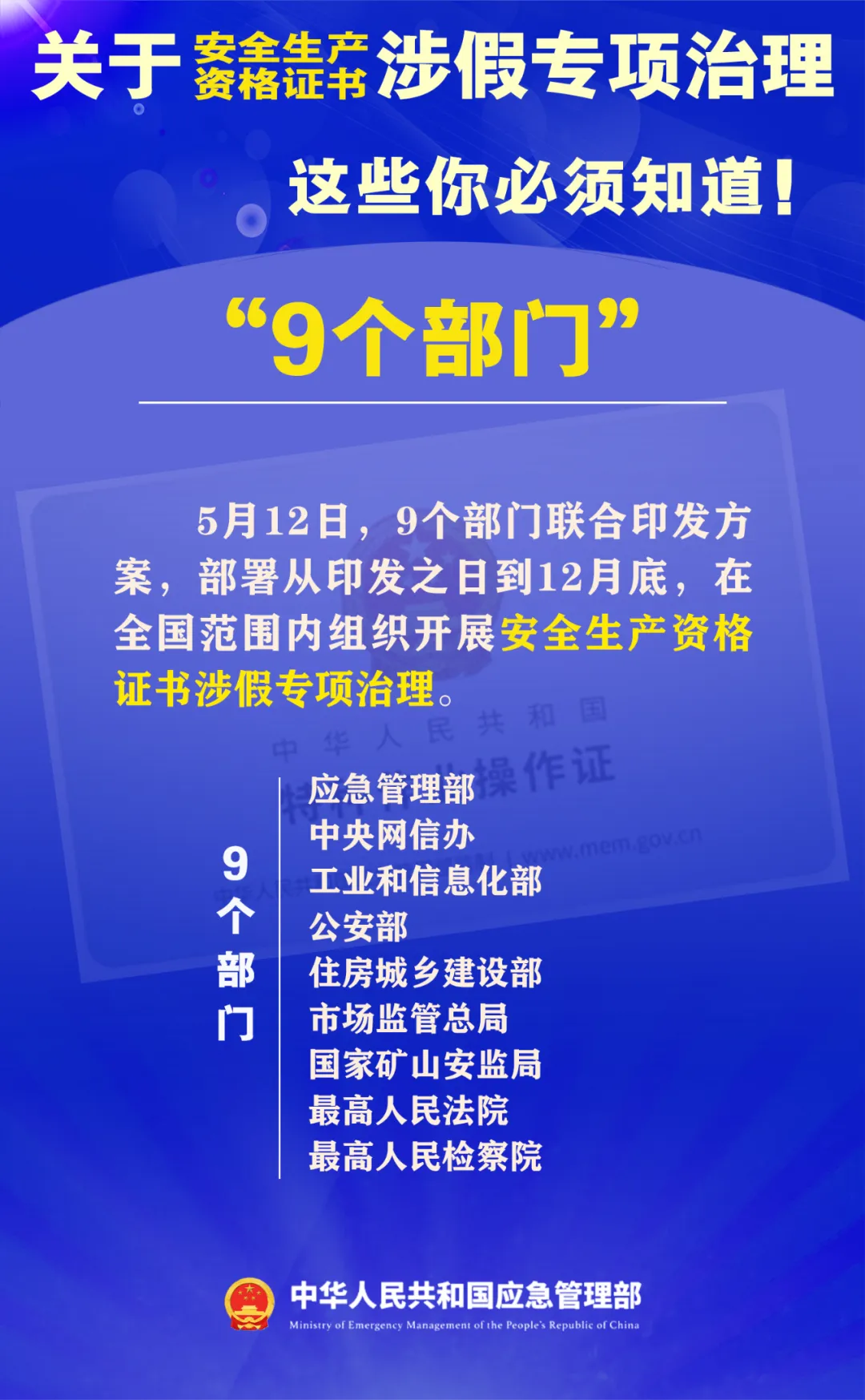 安全生产资格证书涉假问题给企业生产经营活动埋下重大事故隐患近年来因从业人员持假证或无证违规作业酿成的事故屡屡发生近日应急管理部等9部门联合印发工作方案在···